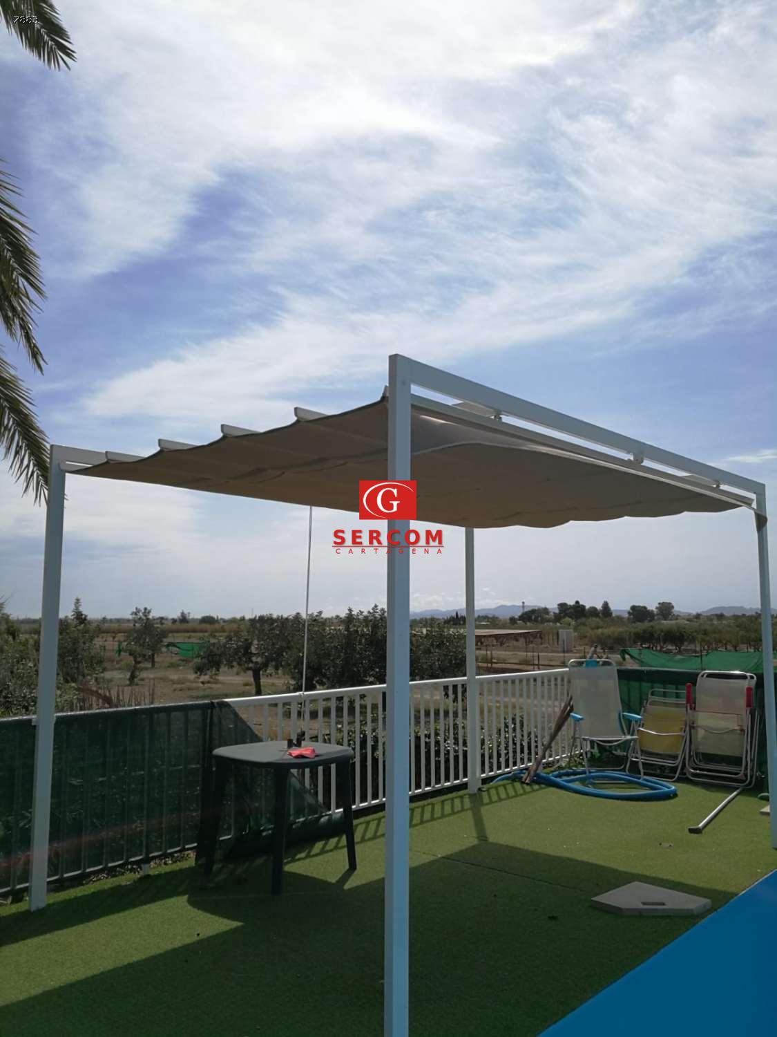 Toldos nuevos en zona de piscina y recreo.