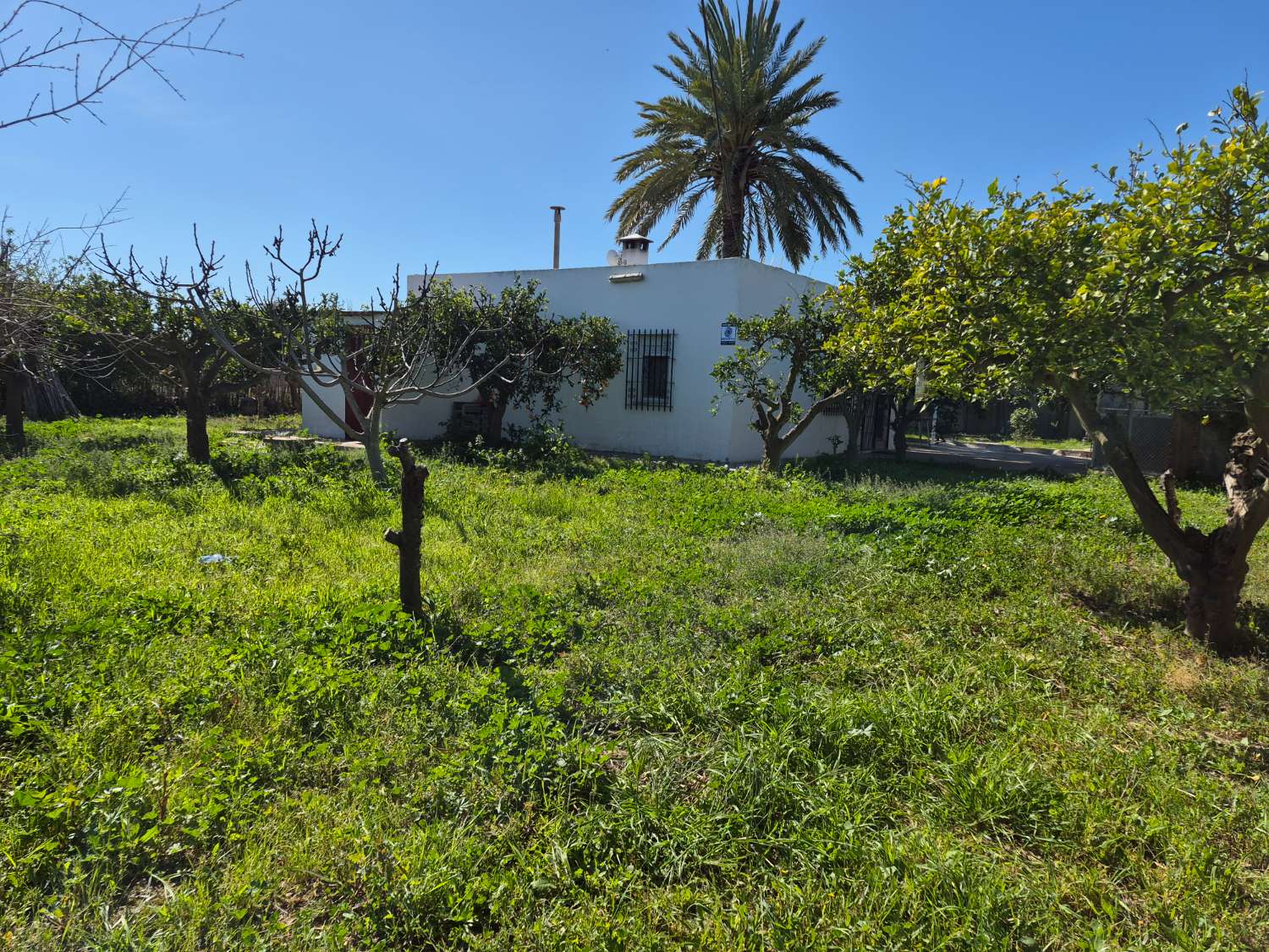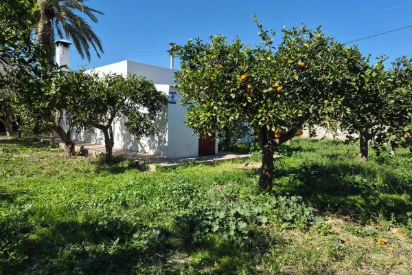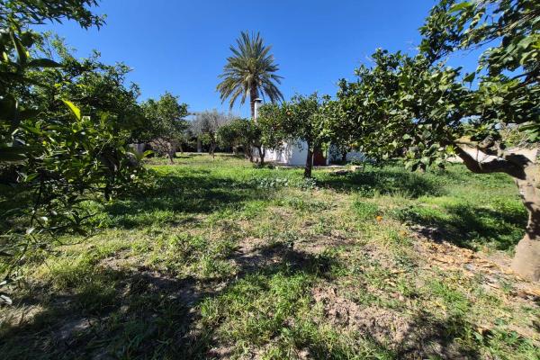 Entre 30 y 40 árboles frutales en producción: naranjos, limoneros, granados, olivo, peral, pomelo, higueras, níspero y almendro.